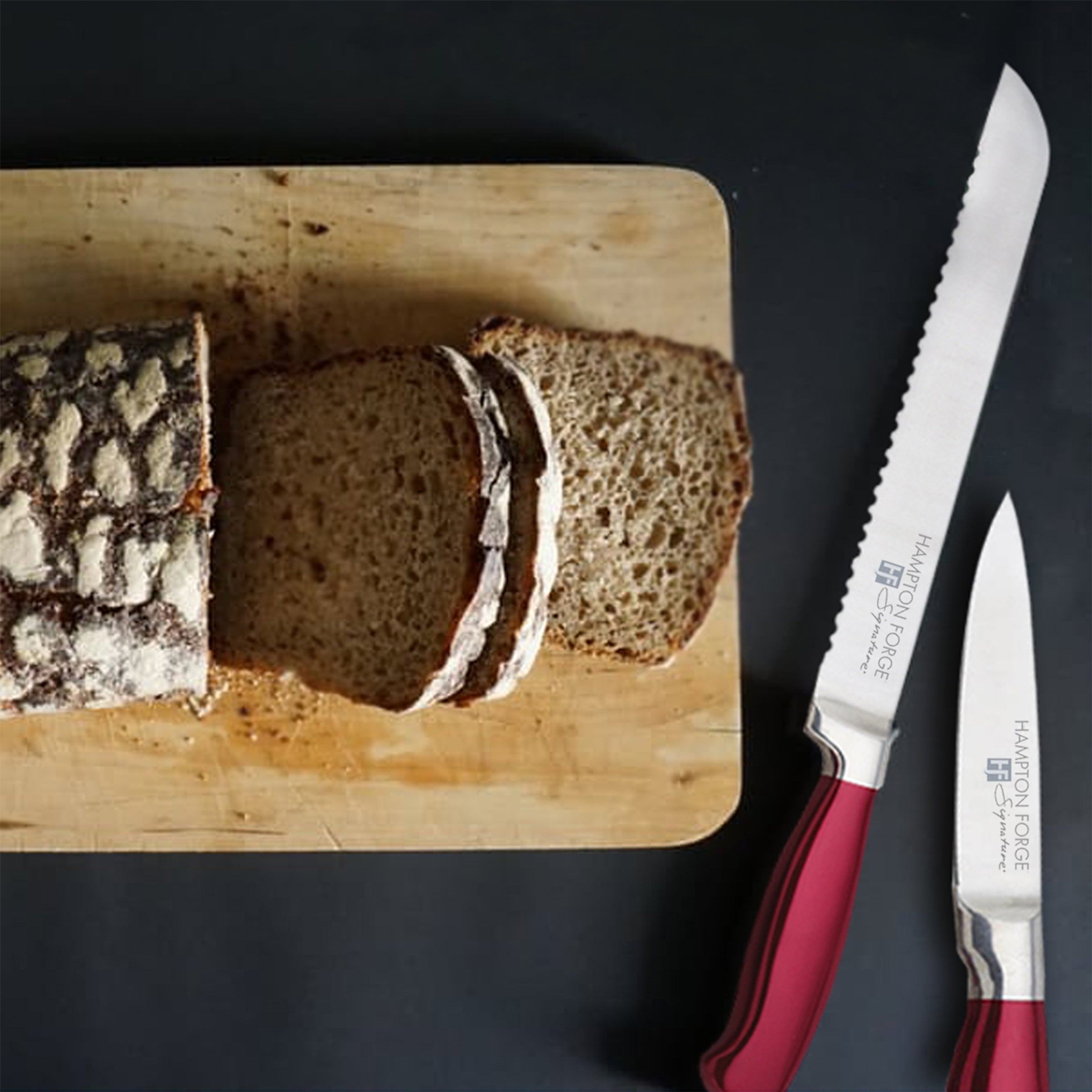 Add to your kitchen essentials with the eye-catching Argentum Red 14 Piece Cutlery Block Set by Hampton Signature. For a modern pop of color that will liven any kitchen space and make food prep fun. this cutlery set delivers. Featuring a collection of performance stainless steel knives with exceptionally sharp edges and dressed in a red pearlescent enamel-coated finish. you can cut just about any food that comes across your counter top and in style. Our set includes a handsome hardwood knife block for safekeeping and easy access.