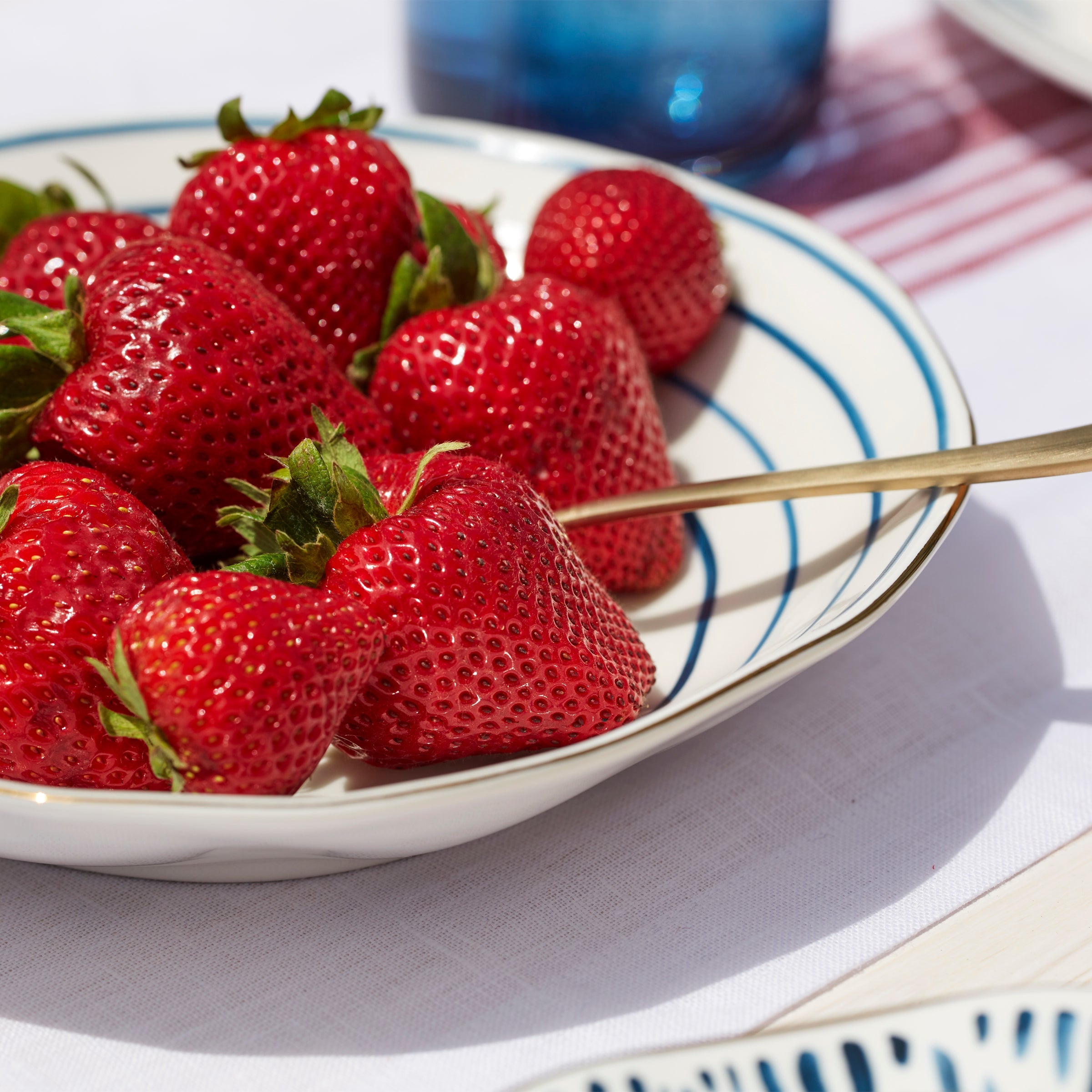 Serve anything from pasta to salad on our Blue Bay pasta bowls. Featuring textile-inspired patterns with delicate gold banding. these bowls are fun yet casual. making them ideal for any setting.