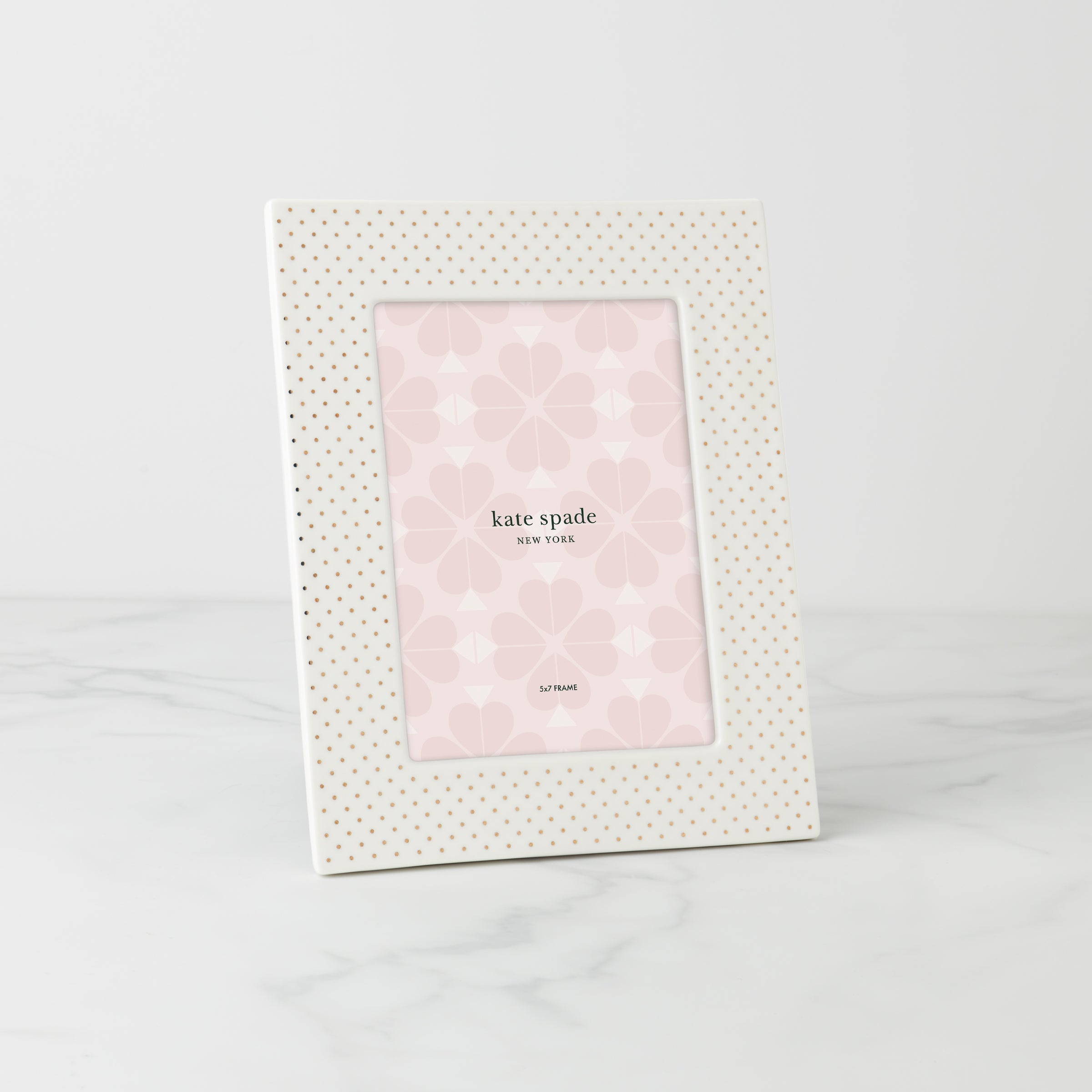 Picture perfect! A thoughtful 5×7 frame to display all your favorite memories. Featuring silver and gold dotted accents to complement whichever photo you choose.