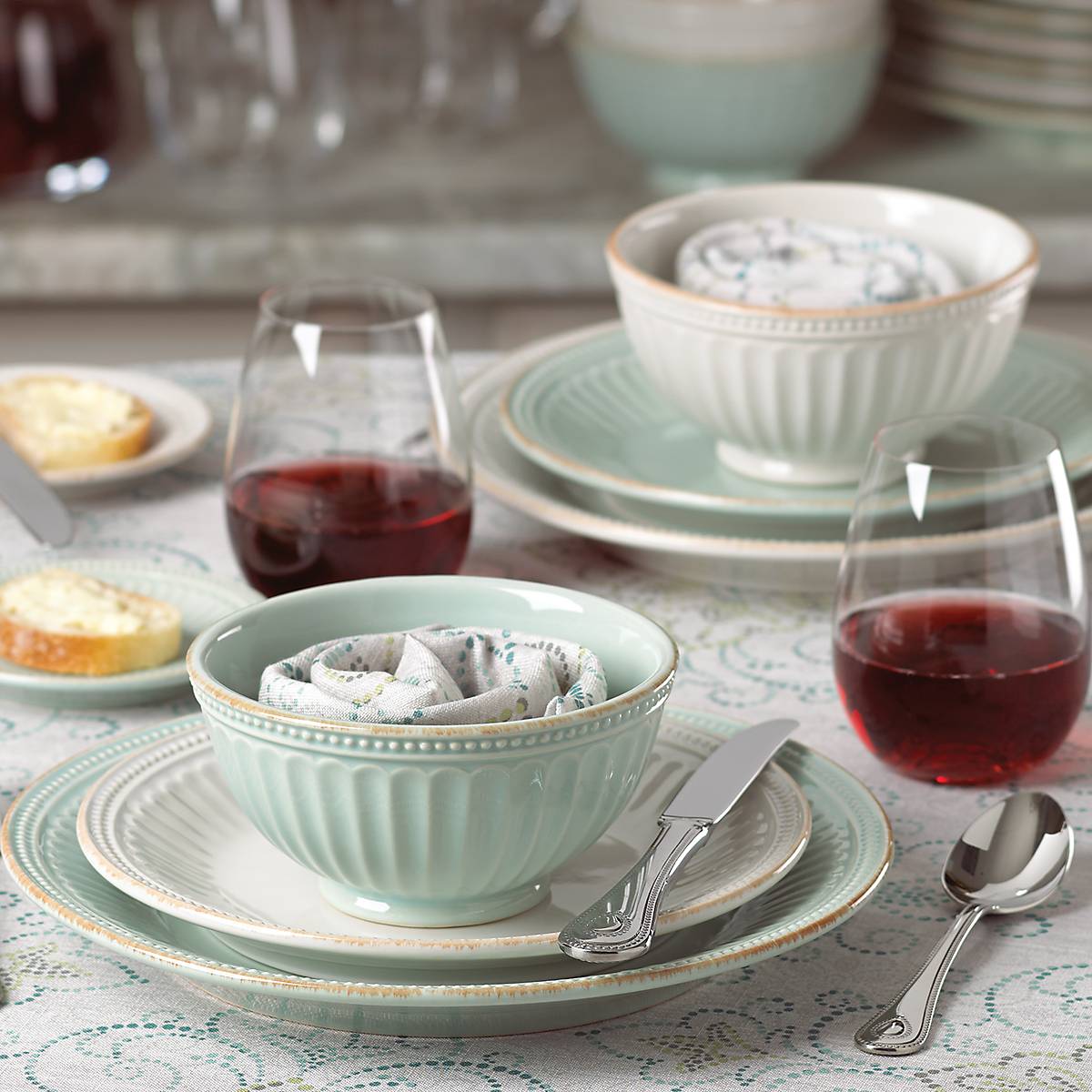 Including a gentle curved border accented with hand-applied tea stains. this four-piece place setting in sky blue features thick grooves and delicate beading for a rustic textured addition to the table. Crafted in durable ceramic stoneware. this item is microwave and dishwasher-safe. for added convenience.