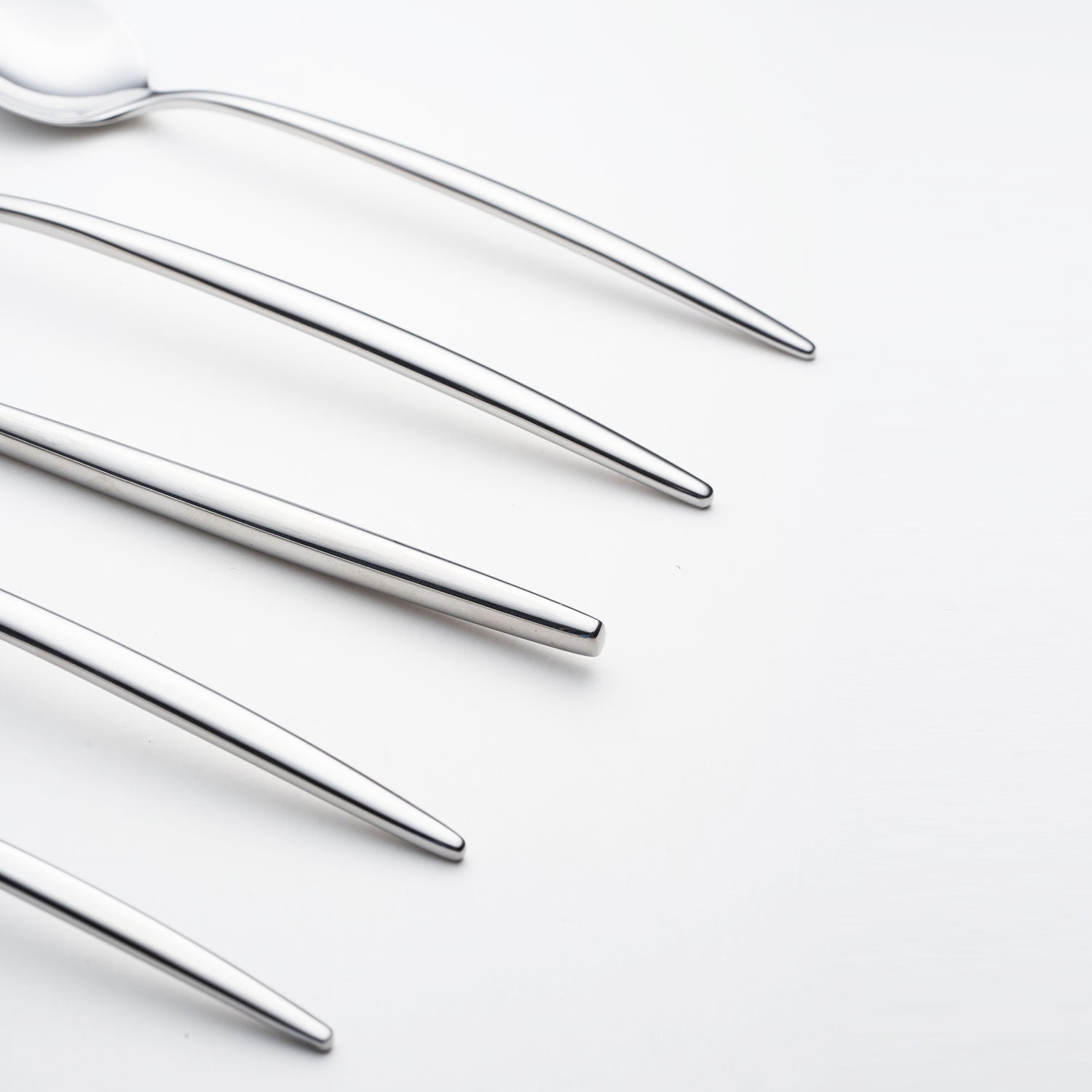 20-piece forged service for 4 with a slender handle that evokes a classic Scandinavian feel in a classic. polished mirror finish.