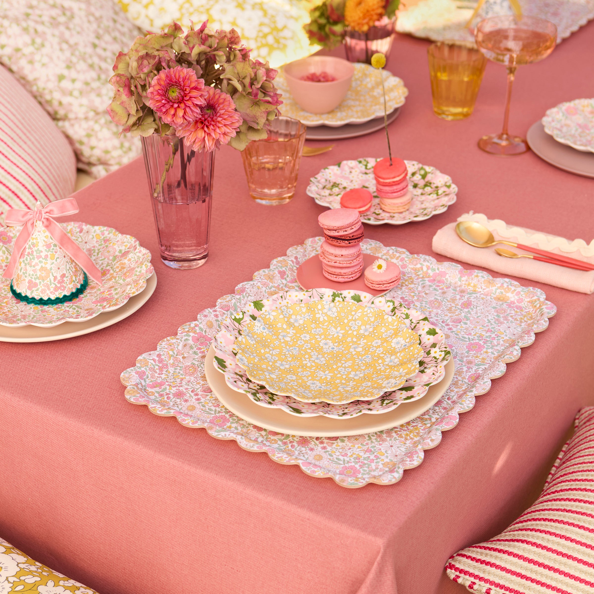 This small tray combines practicality and style with a floral Liberty print design. teamed with a scalloped edge for a more sophisticated look. Made from birch veneer plywood with a melamine coating. for durability without compromising on elegance. Ideal for carrying and presenting food and drinks. for breakfast in bed. or as a base for decorative displays or storage. From Meri Meri. a brand we love.?