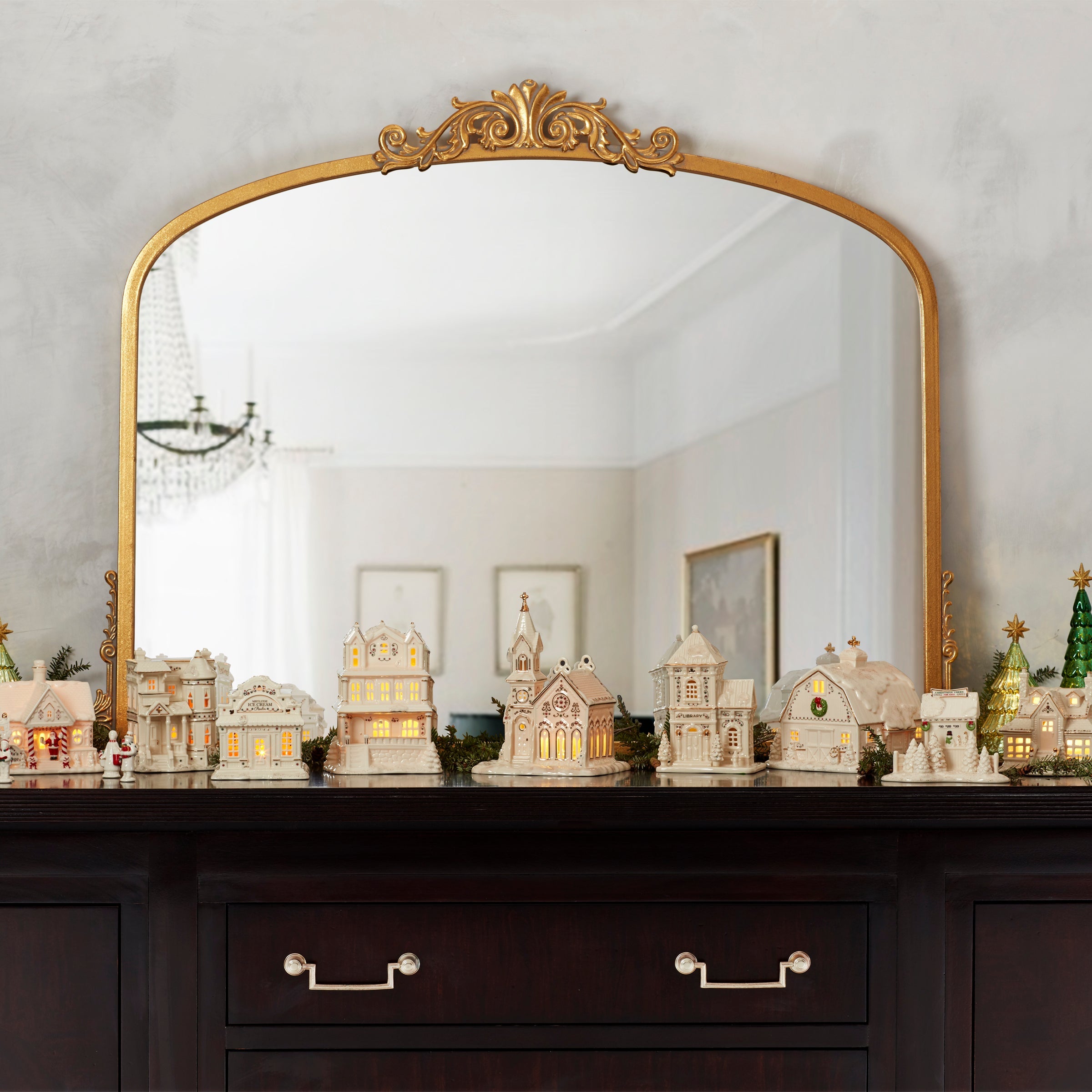 Create a cozy winter scene with our Mistletoe Park Village Traditions collection. This 6-piece figurine set features Santa’s cottage. a Welcome to Mistletoe Park sign and four caroler figurines crafted of creamy porcelain. Santa’s cottage is softly illuminated from the inside to create a warm. glowing atmosphere. Complete with 24k gold accents for a beautiful finish.