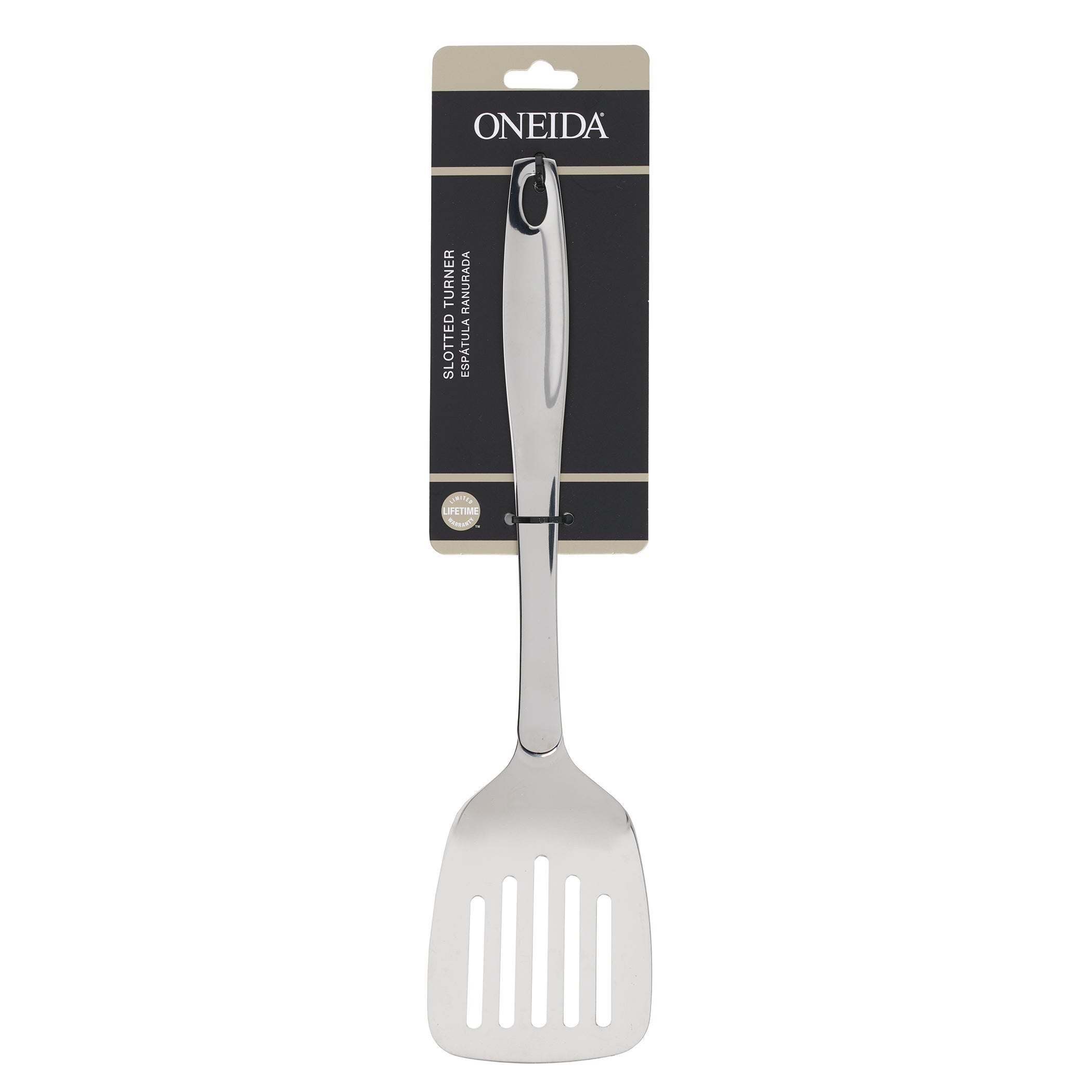 When it comes to kitchen essentials. Oneida flips the script with tools that blend durability and style. This large slotted turner glides effortlessly under pancakes. burgers. or delicate fish. letting grease and liquids drain away like a pro. And it’s not just for flipping??use it to serve. stir. or sneak a taste right out of the pan!