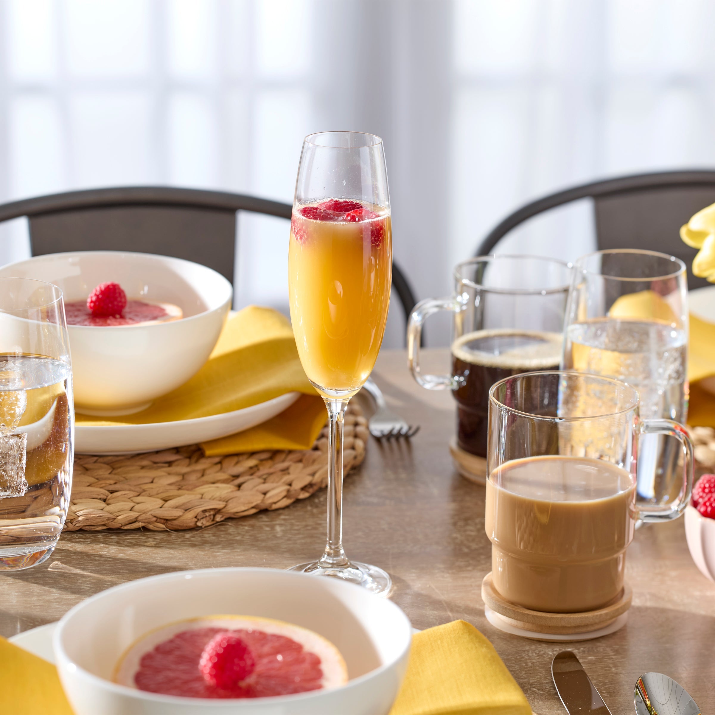 Handcrafted of durable and elegant mouthblown crystal glass with fire-polished rims. these Tuscany Classics champagne flutes are ideal for toasting to a special occasion or simply enjoying a refreshing champagne or prosecco. This set is break-resistant and dishwasher-safe. for added convenience.